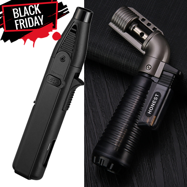 Dit is een set van twee aanstekers, de Pen Torch Black 2023 + de Honest Gasbrander Zwart.